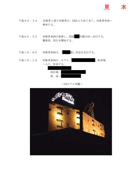 調査報告書例 - 浮気調査